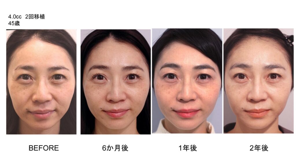 ご自身の細胞を移植するので、安全性が非常に高く、自然な若返り効果により、患者様本来の自然な若さを取り戻すことができます。