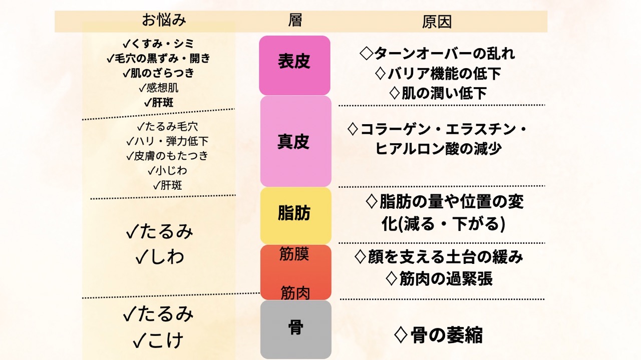 お顔は1枚ではなく層考え、層で治療していくとよりナチュラルに、改善し、健康になった肌が維持できます!